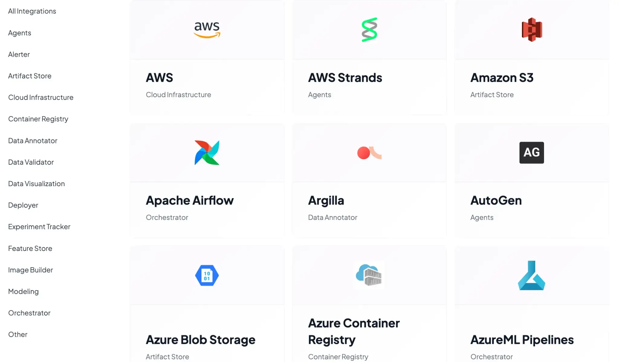These are just a few; you can learn about the complete list of integrations here: ZenML integrations.