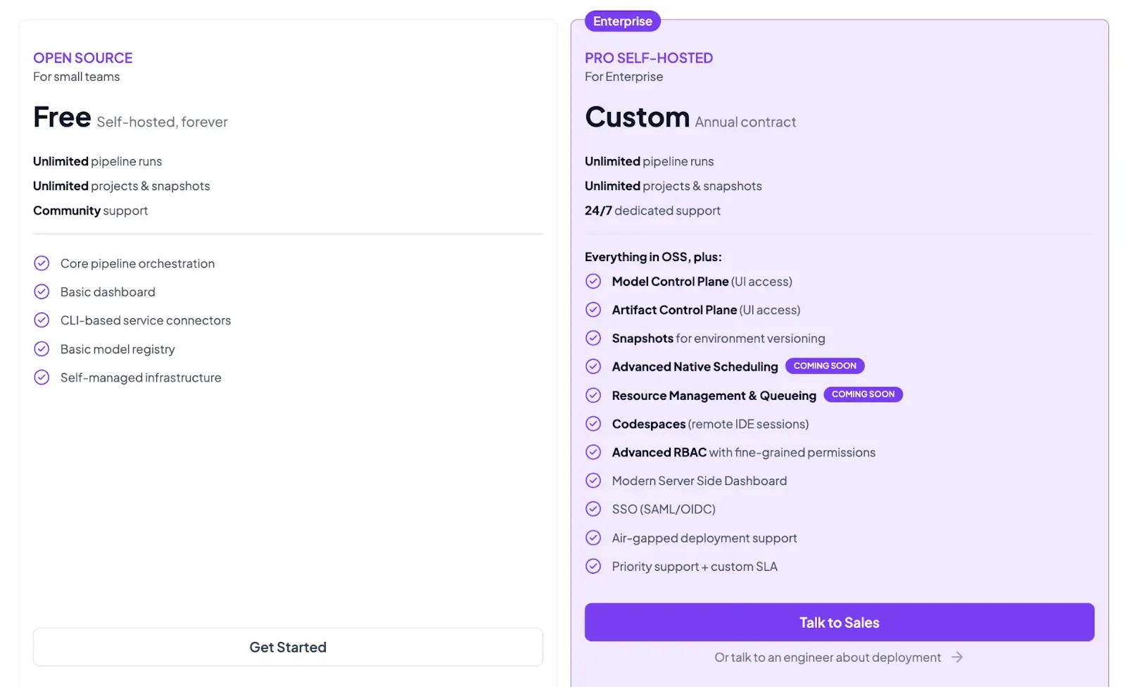Both the plans above are self-hosted. ZenML now also has 4 paid SaaS plans: