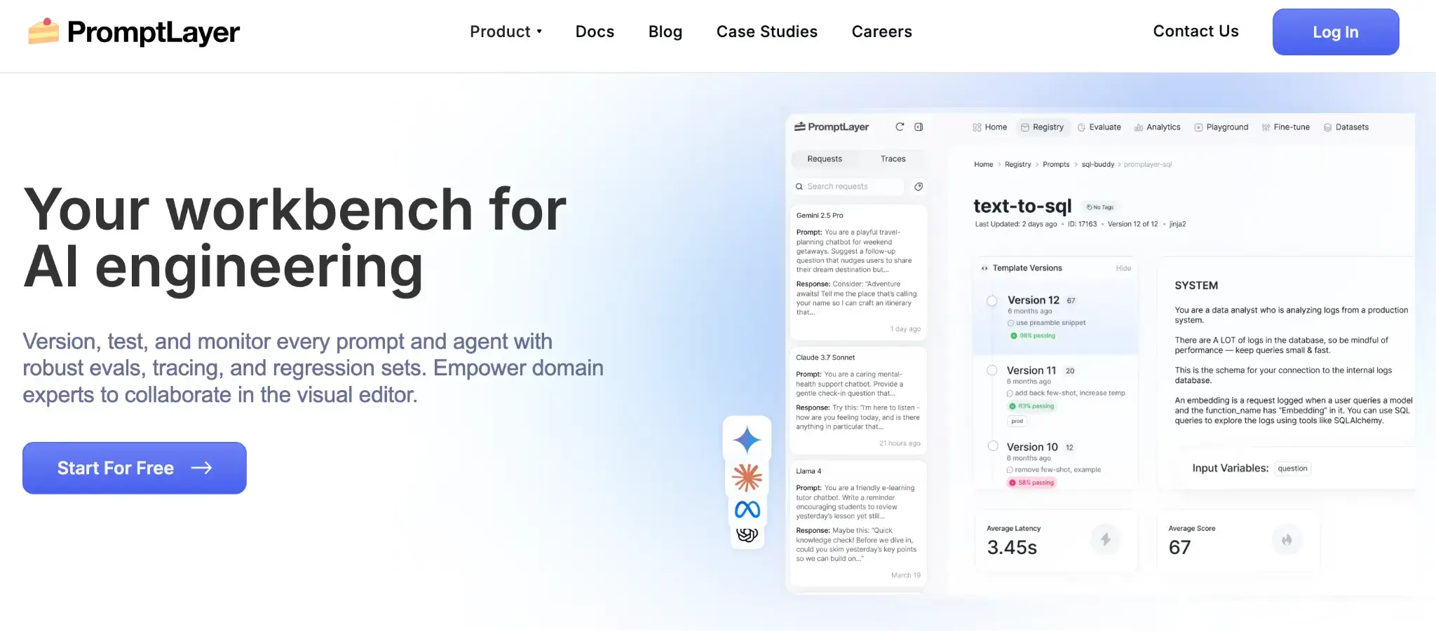 PromptLayer is purpose-built for prompt engineering. It’s ideal for both engineers and non-technical collaborators. Features like A/B testing, an agent builder, and API integrations make it a strong choice for teams focused on optimizing prompt quality and iteration speed.