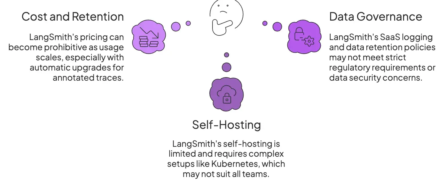 LangSmith is a polished observability suite, but it has several drawbacks in practice: