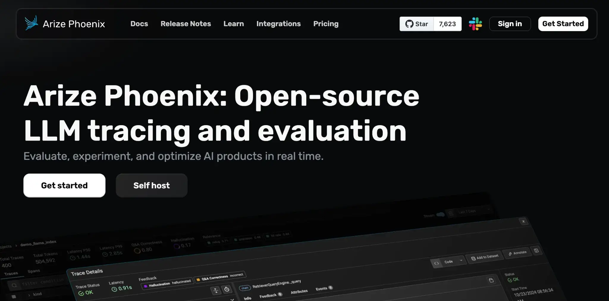 Arize Phoenix is an open-source library from Arize, an ML-observability company. It emphasizes a “local-first” approach: you run Phoenix from your notebook or server. Phoenix implements the OpenTelemetry standard, so it can capture any LLM call instrumented through its SDK.