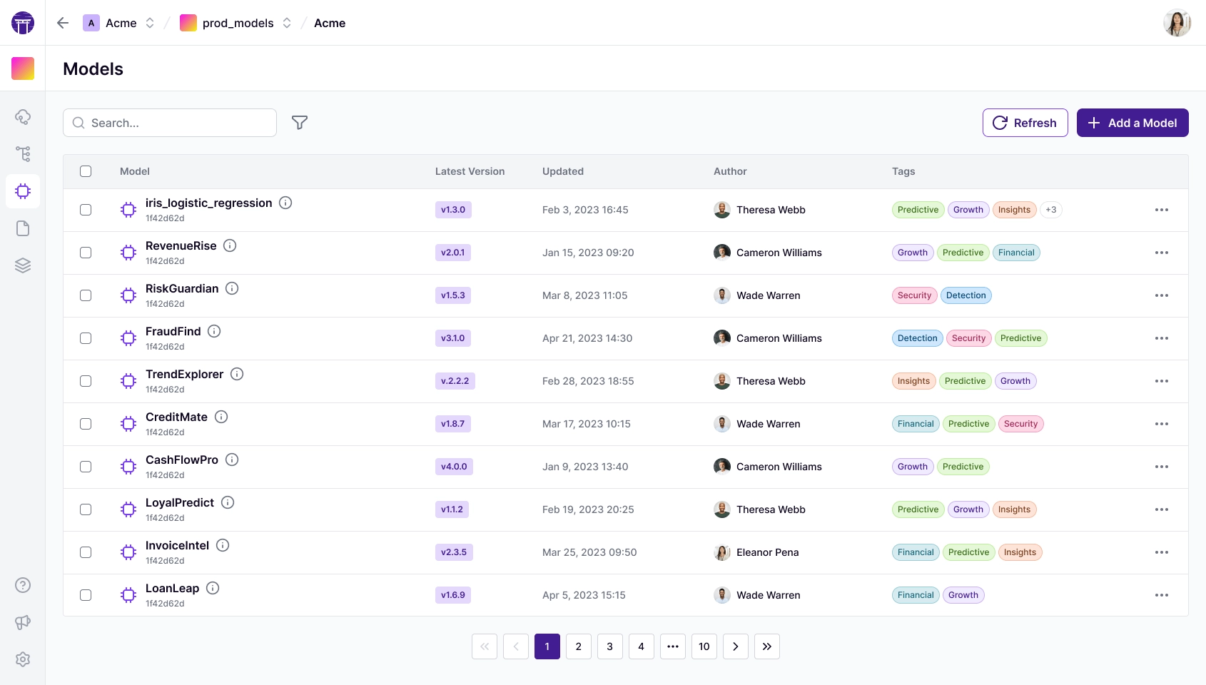 - Lets you deploy any model - Python, Spark, XGBoost, and more, as REST endpoints with one click. It also offers dashboards that show service health, accuracy over time, data drift for each model, and more stats.
