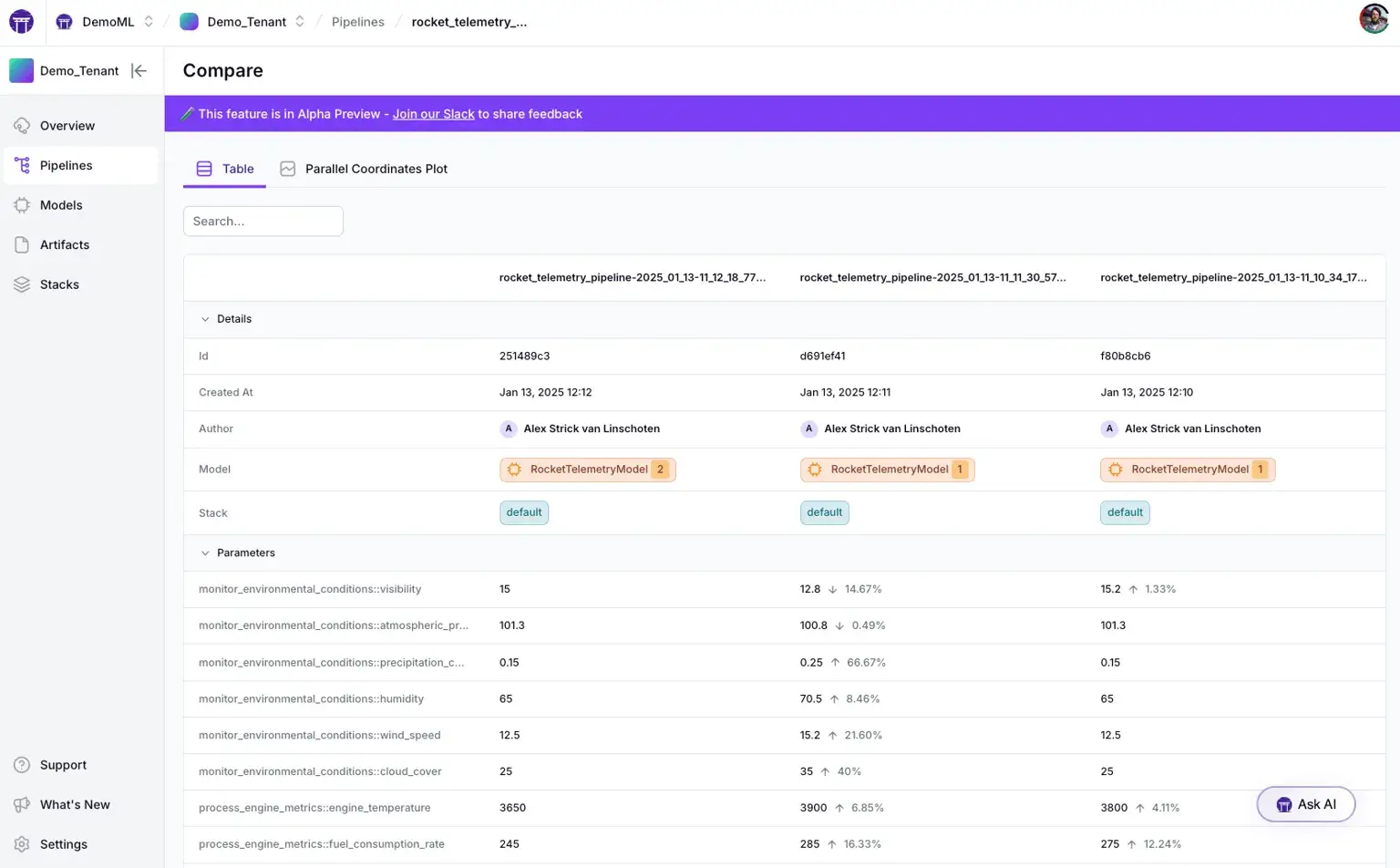 There’s also no built-in comparison across artifact types. You can inspect artifacts per run, but comparing output files or visualizations across runs requires manual inspection or external tooling. MLflow's strength lies in storage flexibility, not artifact lineage.