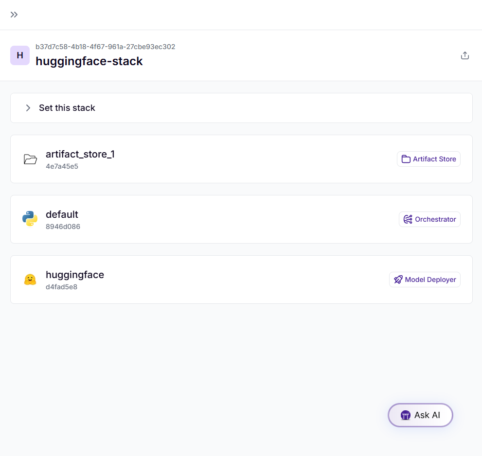 !zenml stack set huggingface-stack