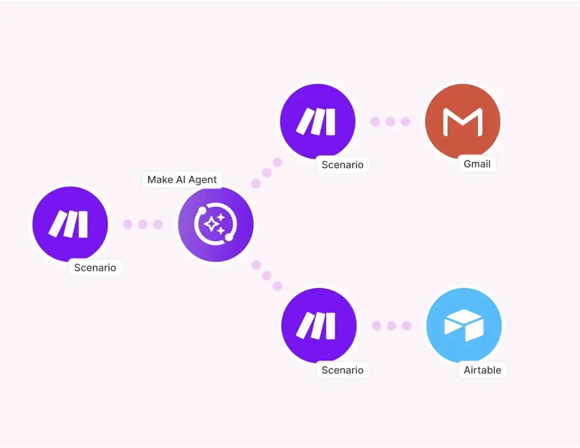 Make takes a more abstracted approach and prioritizes accessibility over technical depth. Currently in open beta, Make’s AI Agents are goal-driven automations. You simply define the agent's purpose via a system prompt, and it autonomously selects from available tools to accomplish the task.
