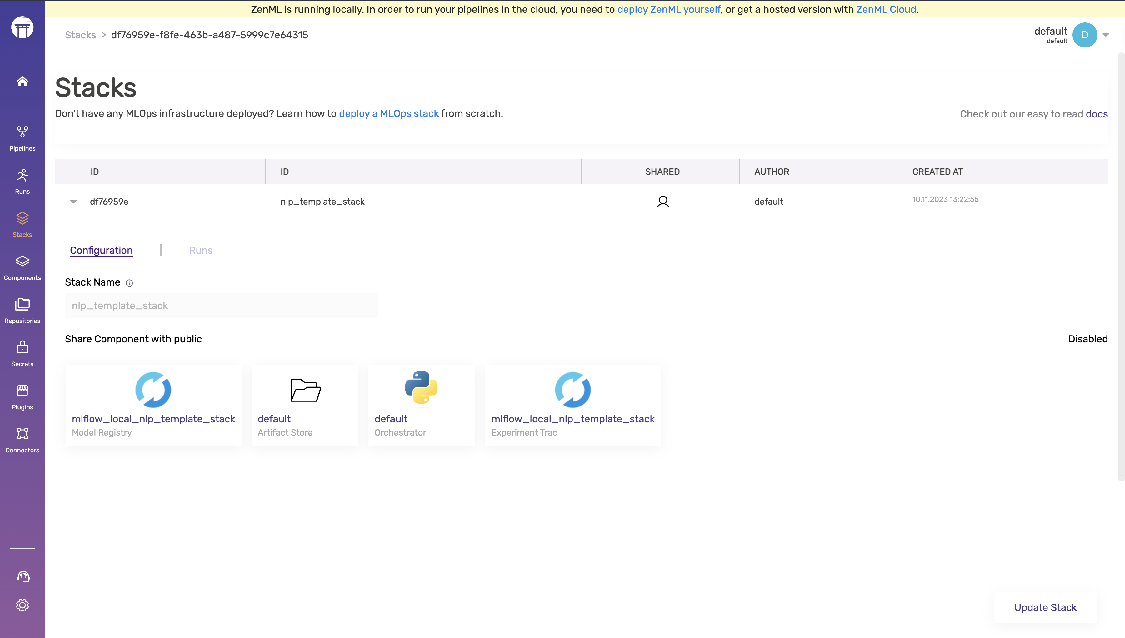 The project is ready to be used and can run as-is without any further code changes! You can try it right away by installing ZenML, the needed ZenML integration, and then calling the CLI included in the project. We also recommend that you start the ZenML UI locally to get a better sense of what is going on under the hood: