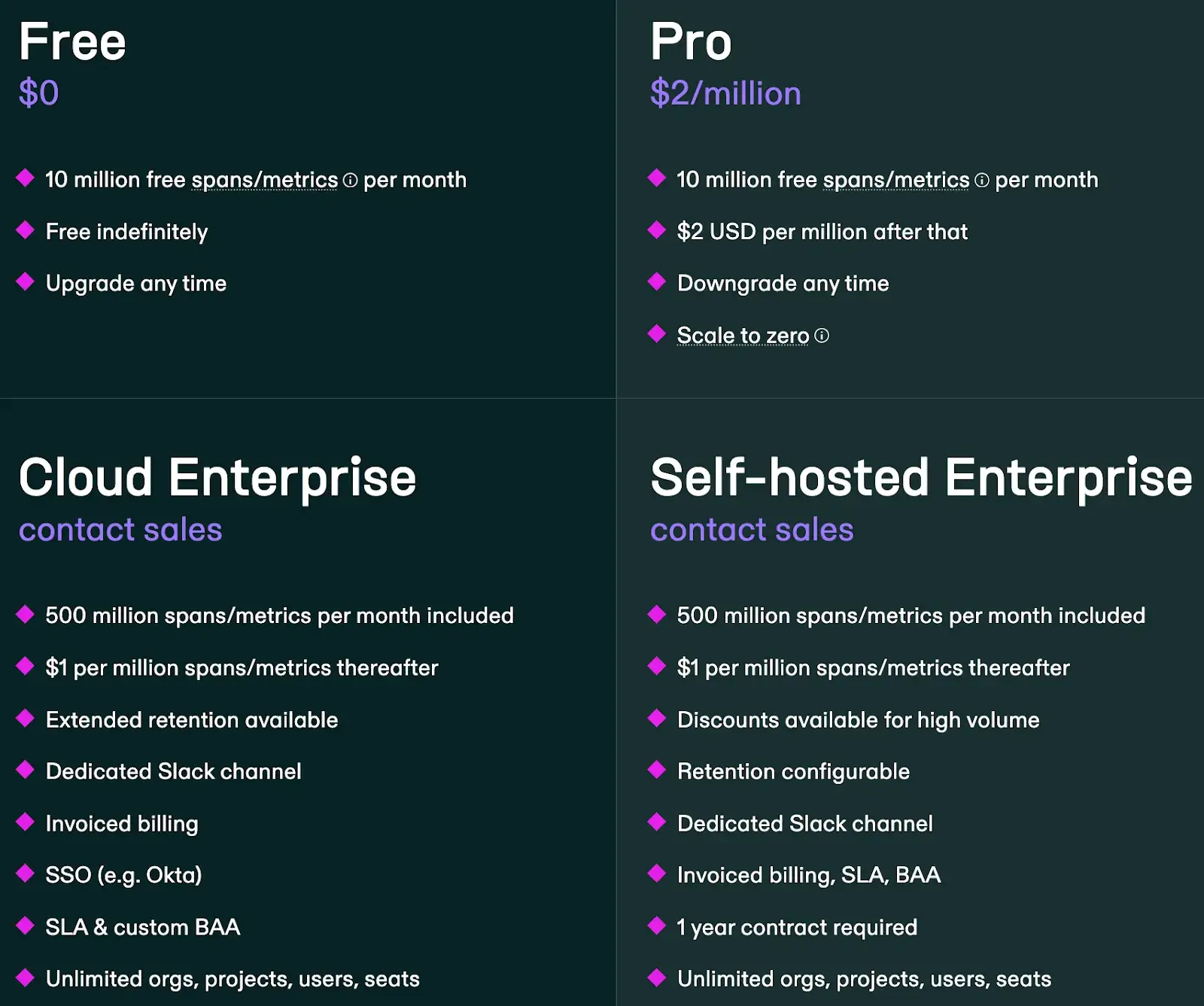 - Pro: $2 per million spans/metrics