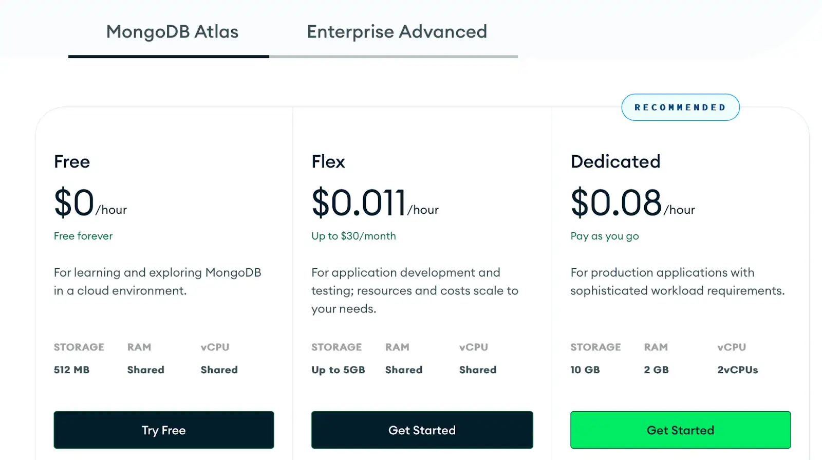 - Use Atlas Vector Search at no additional charge, pay only for the cluster, and prototype on the free M0 tier with small size limits.
