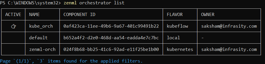 zenml orchestrator list