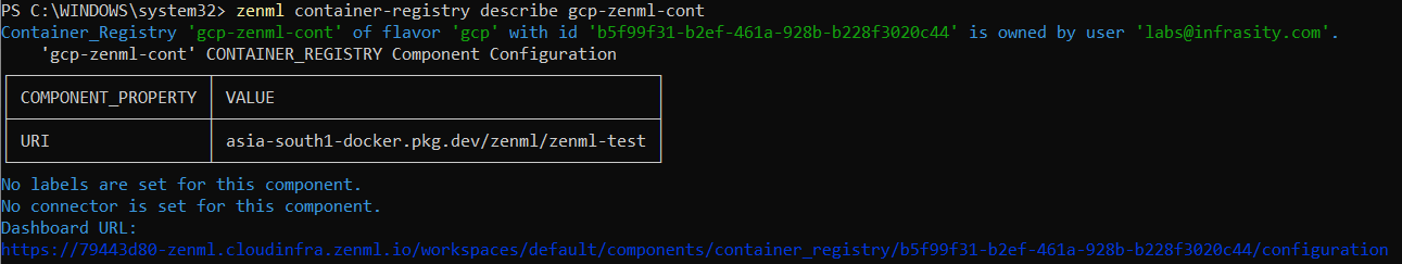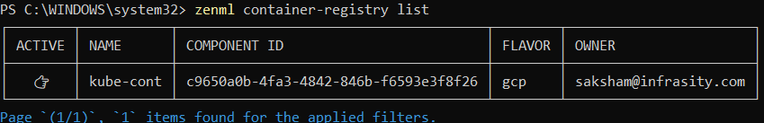 zenml container-registry list