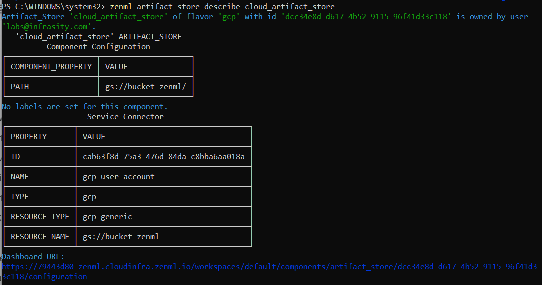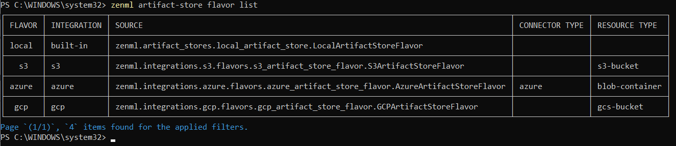 - If you would like to see the available flavors of Artifact Stores, you can use the command: