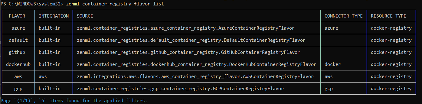 zenml container-registry flavor list