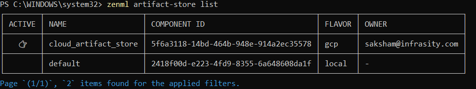 zenml artifact-store list