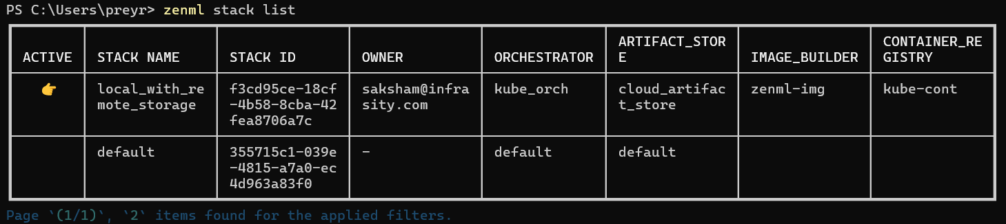 zenml stack list