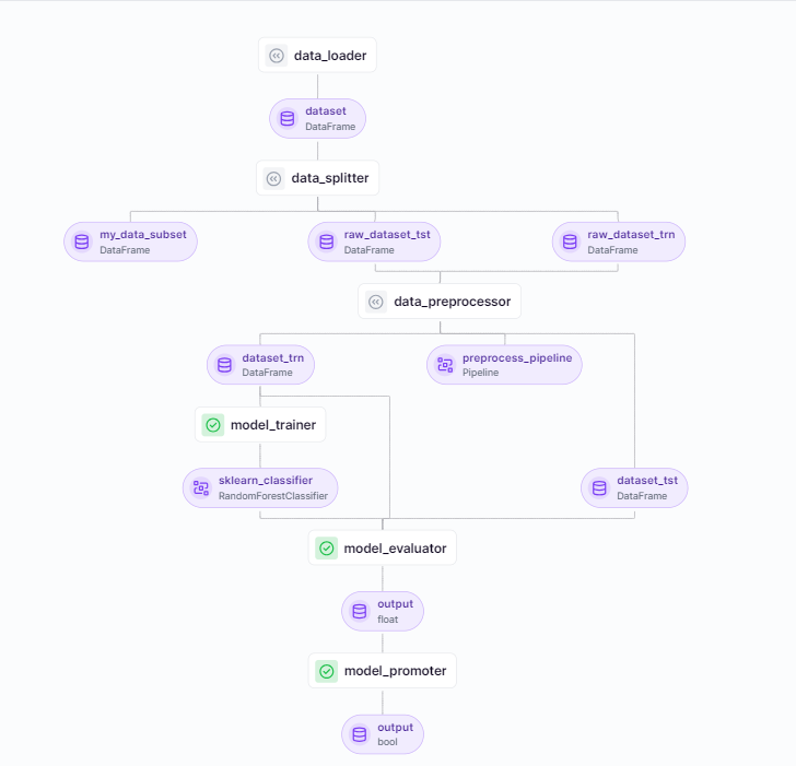 - model_promoter: Decides on model promotion based on the evaluation result (boolean).