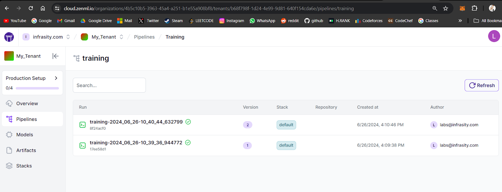 Register your staging and production environments as ZenML stacks to seamlessly manage and run ML workflows. This also provides a user interface to browse, explore, and manage your ML pipelines efficiently.